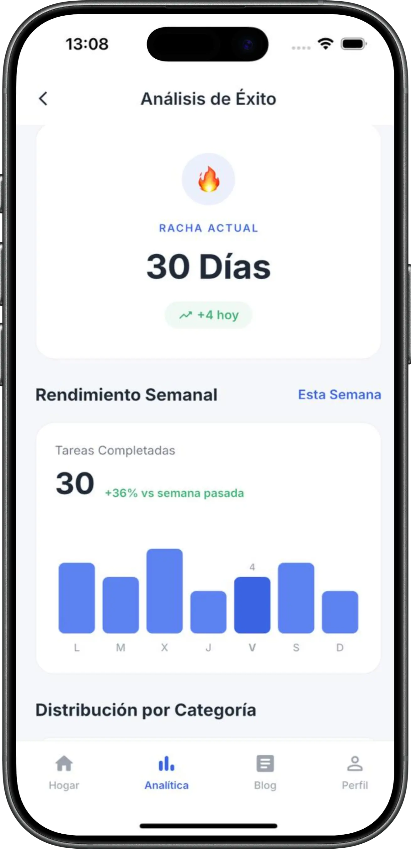 Biblioteca de + tareas, panel en vivo, gráficos Q1-Q7. Centro de comando estratégico en tu bolsillo.